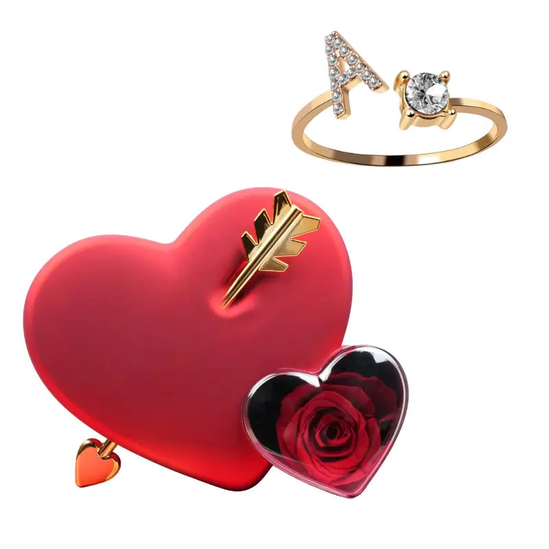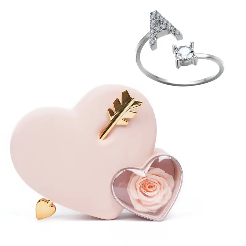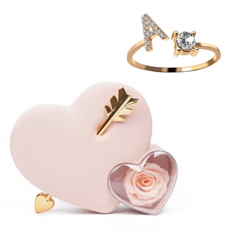 Coffret Amour Rose Éternelle avec Bague Initiale