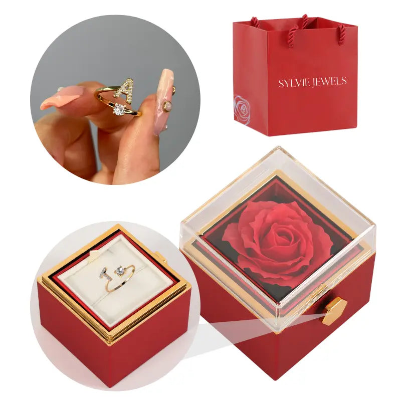 Coffret Bague Personnalisé Initiale avec Rose Éternelle