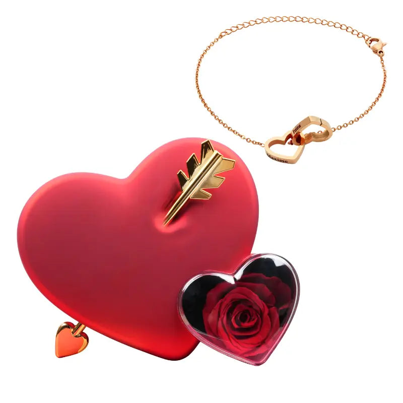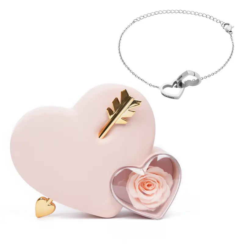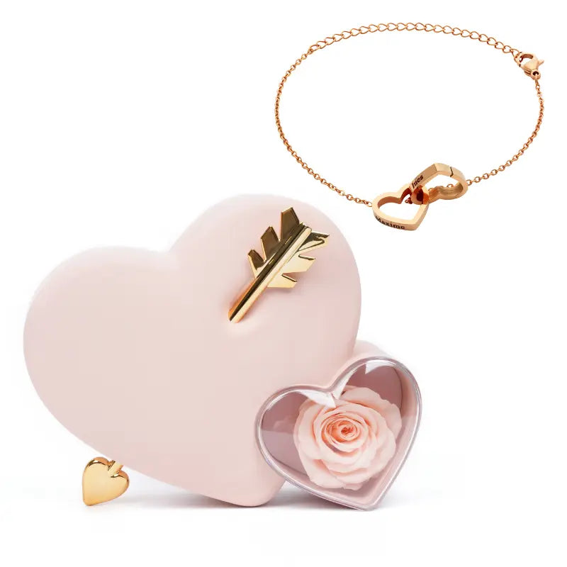 Coffret Amour Rose Éternelle avec Bracelet Gravé