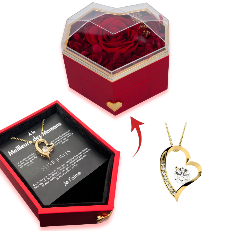 Coffret Cœur Rose Éternelle "À la meilleure des mamans"