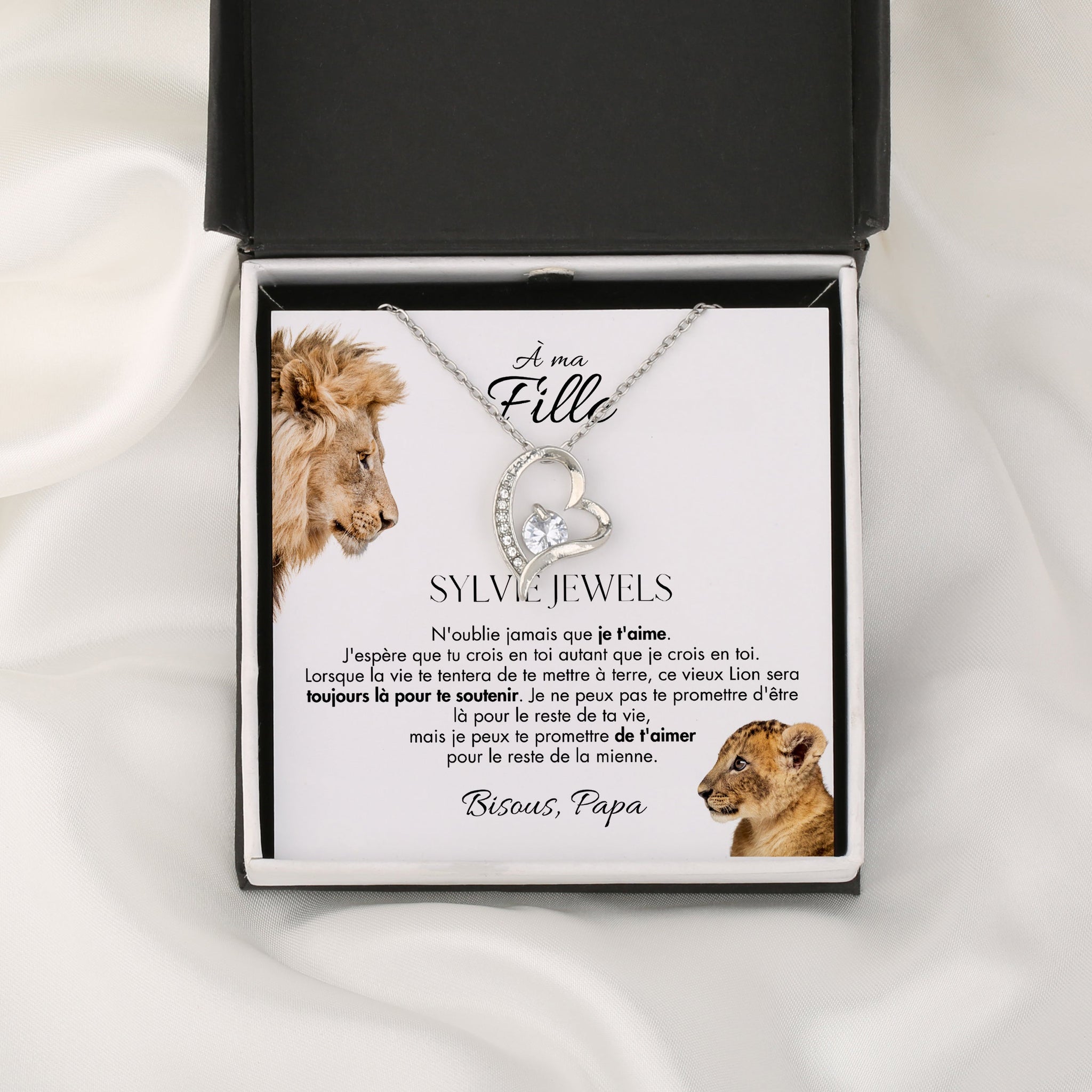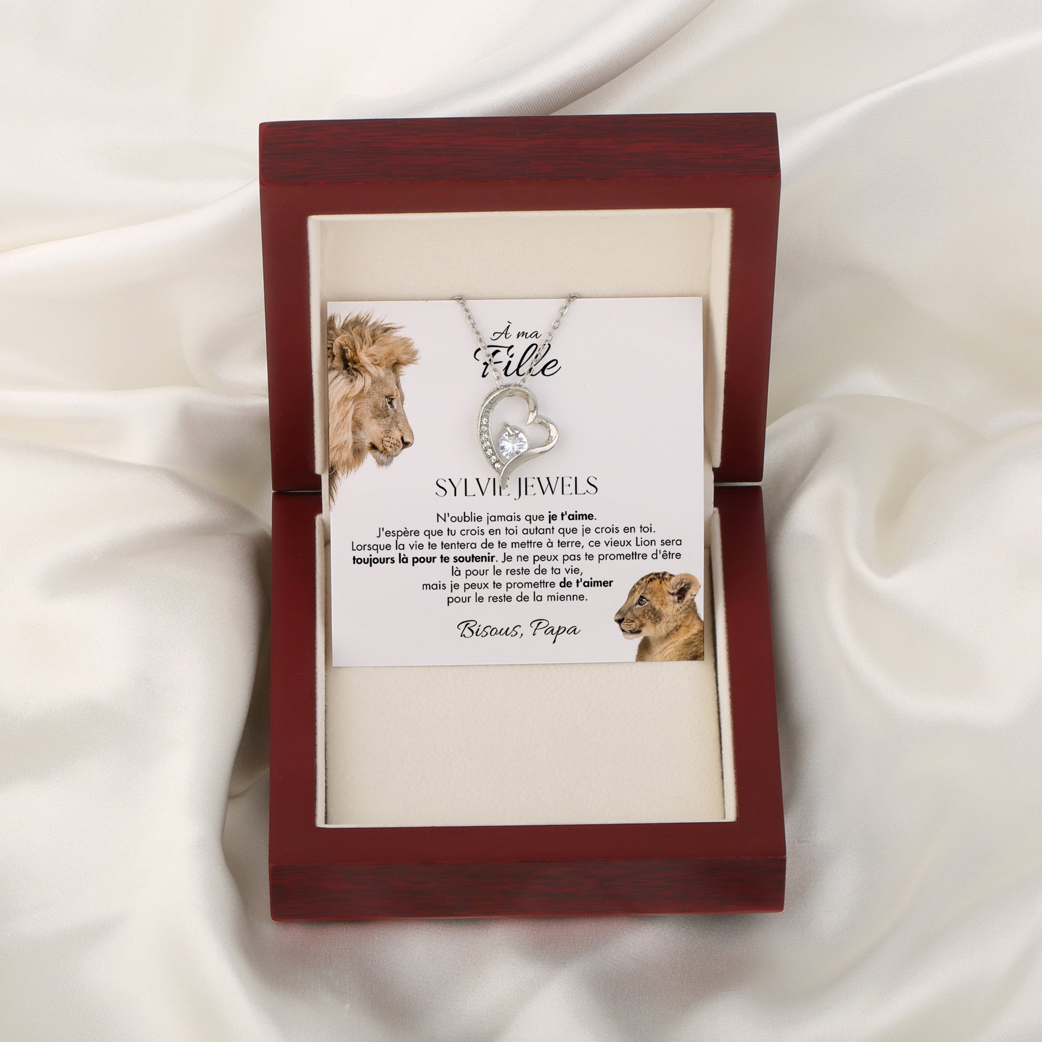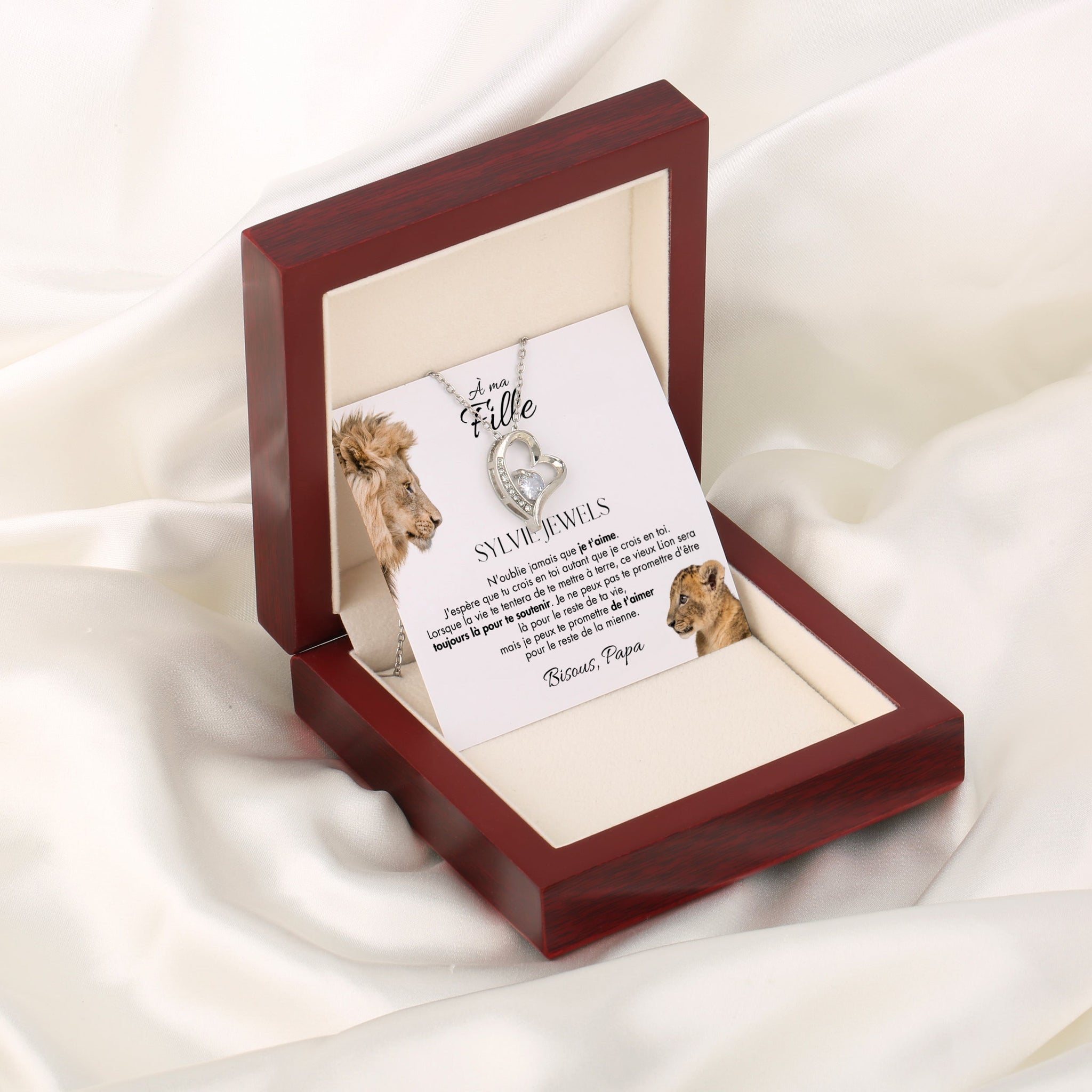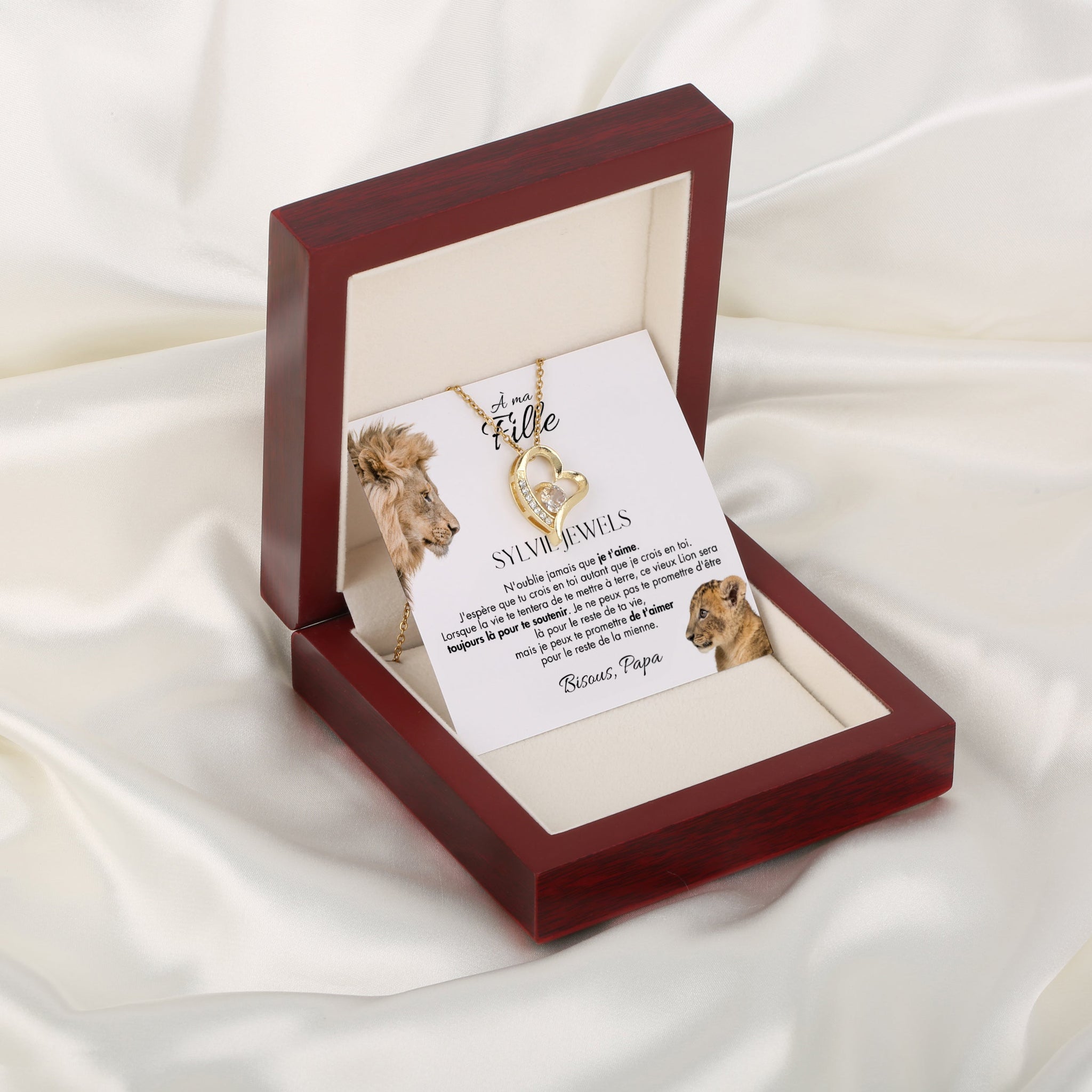 Exprimez votre amour avec ce coffret élégant, qui contient un collier raffiné et un message touchant dédié "À ma fille". Le collier, en acier inoxydable plaqué or ou argent, résistant à l'eau, est disponible en version classique ou premium avec lumière LED. Parfait pour des occasions spéciales, ce cadeau unique marquera un souvenir précieux et émouvant. Profitez de la livraison rapide et de la garantie satisfaction. Un geste mémorable pour faire vibrer le cœur de celle qui compte le plus.