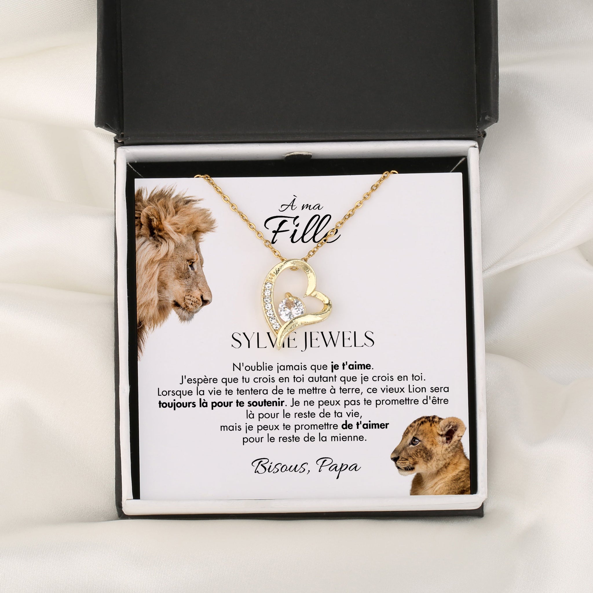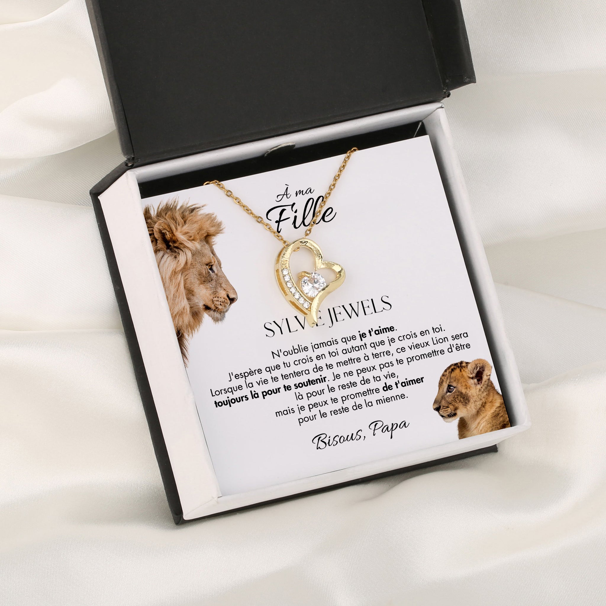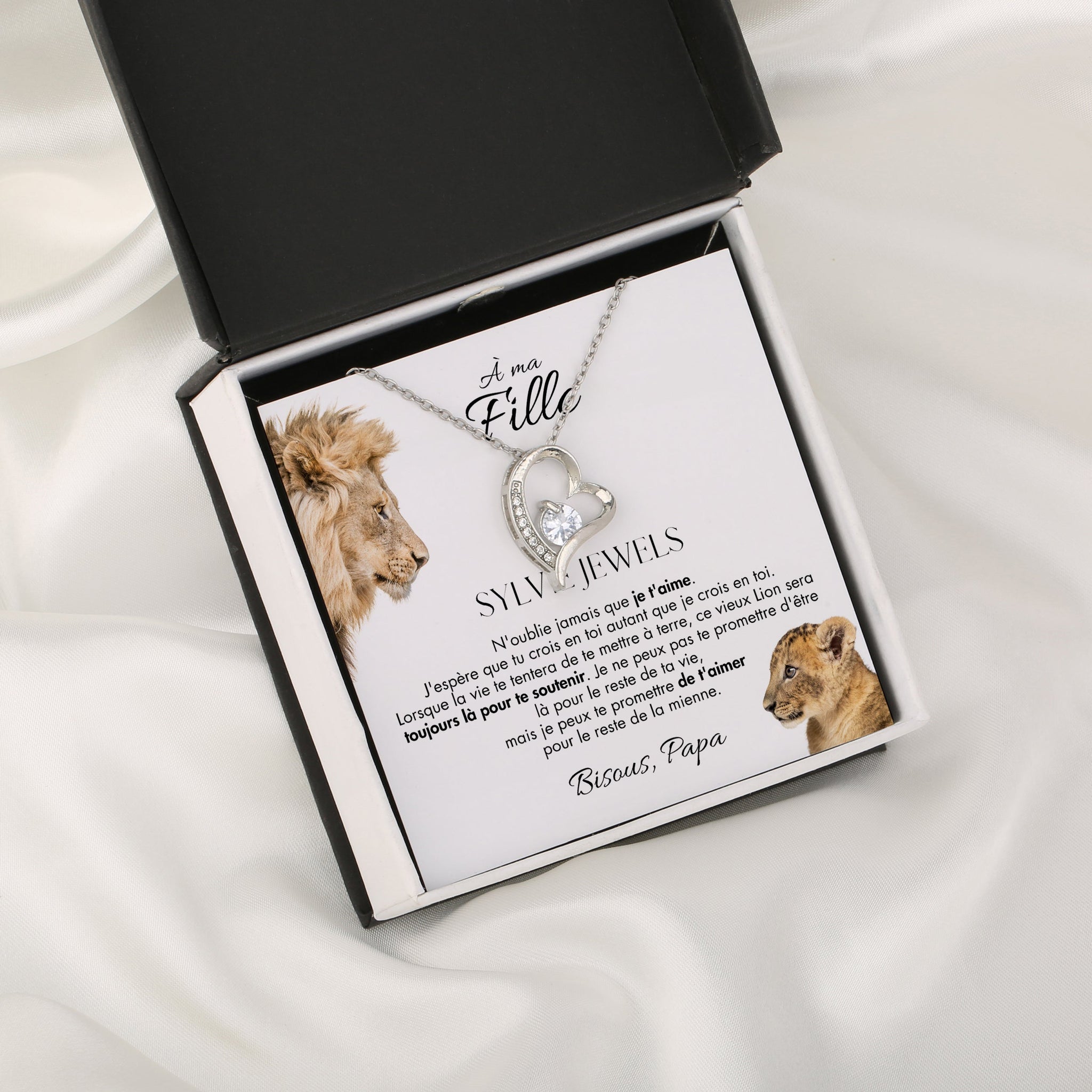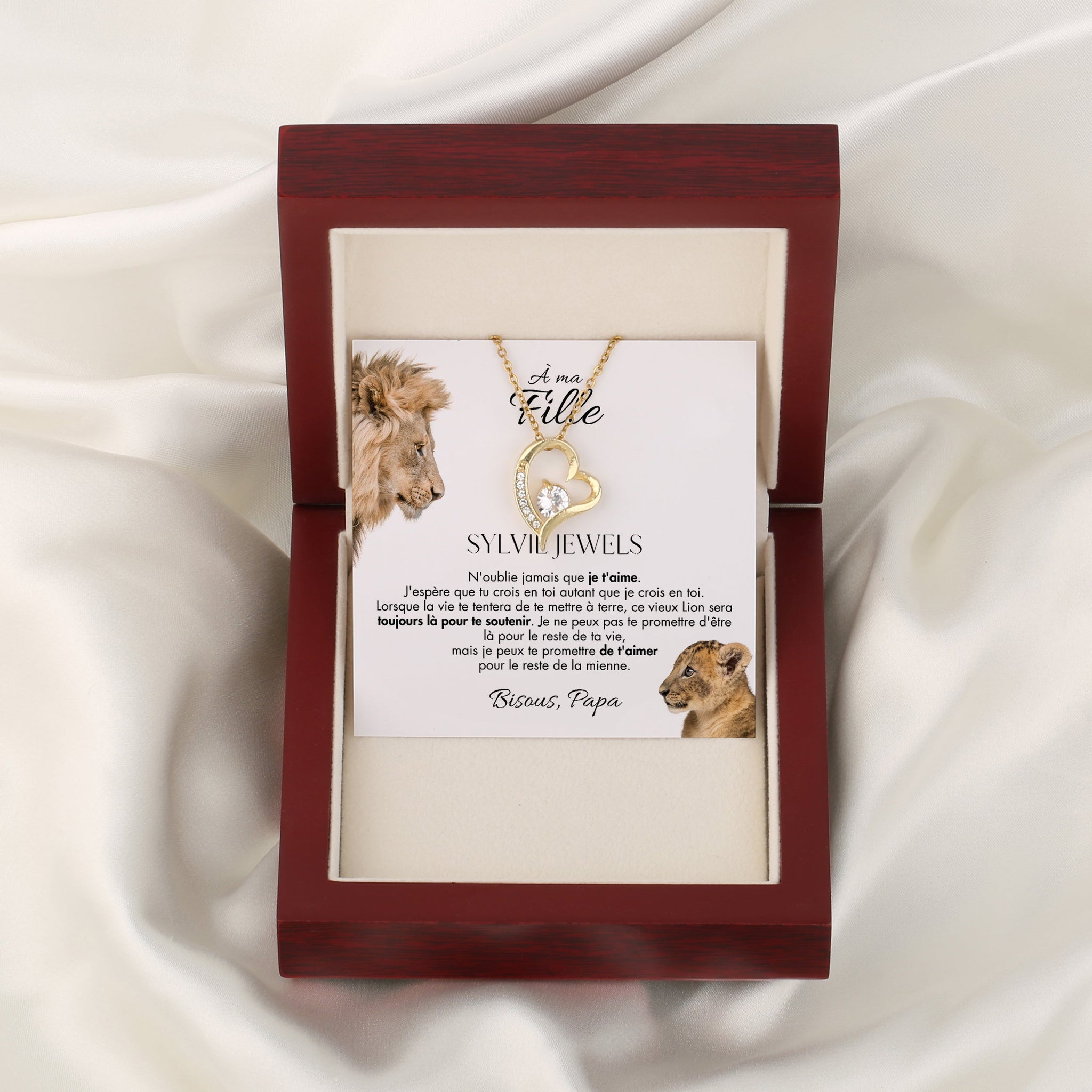 Exprimez votre amour avec ce coffret élégant, qui contient un collier raffiné et un message touchant dédié "À ma fille". Le collier, en acier inoxydable plaqué or ou argent, résistant à l'eau, est disponible en version classique ou premium avec lumière LED. Parfait pour des occasions spéciales, ce cadeau unique marquera un souvenir précieux et émouvant. Profitez de la livraison rapide et de la garantie satisfaction. Un geste mémorable pour faire vibrer le cœur de celle qui compte le plus.