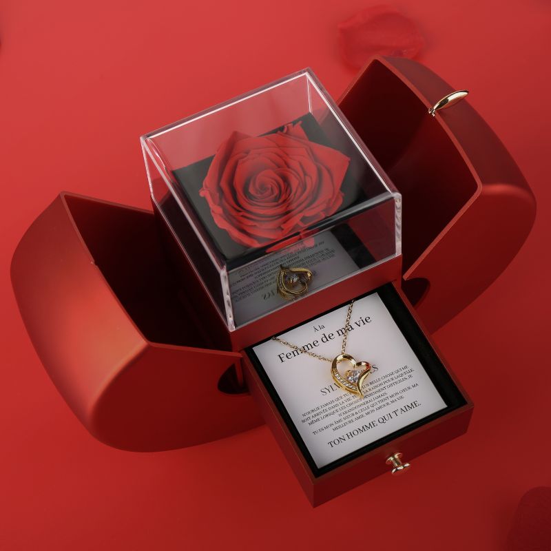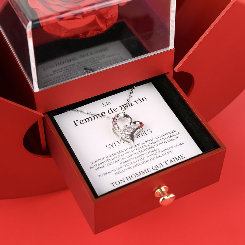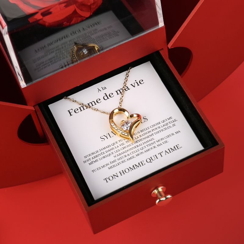 Coffret Pomme Rose Éternelle "À la Femme de ma vie - N'oublie jamais"