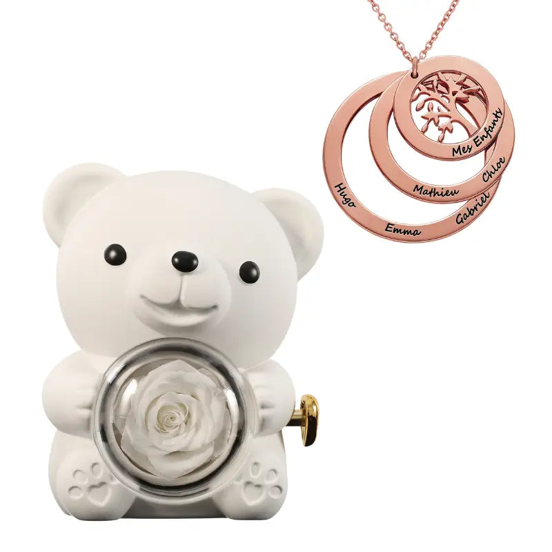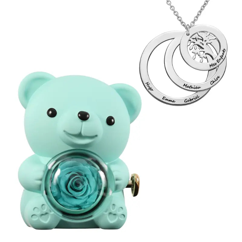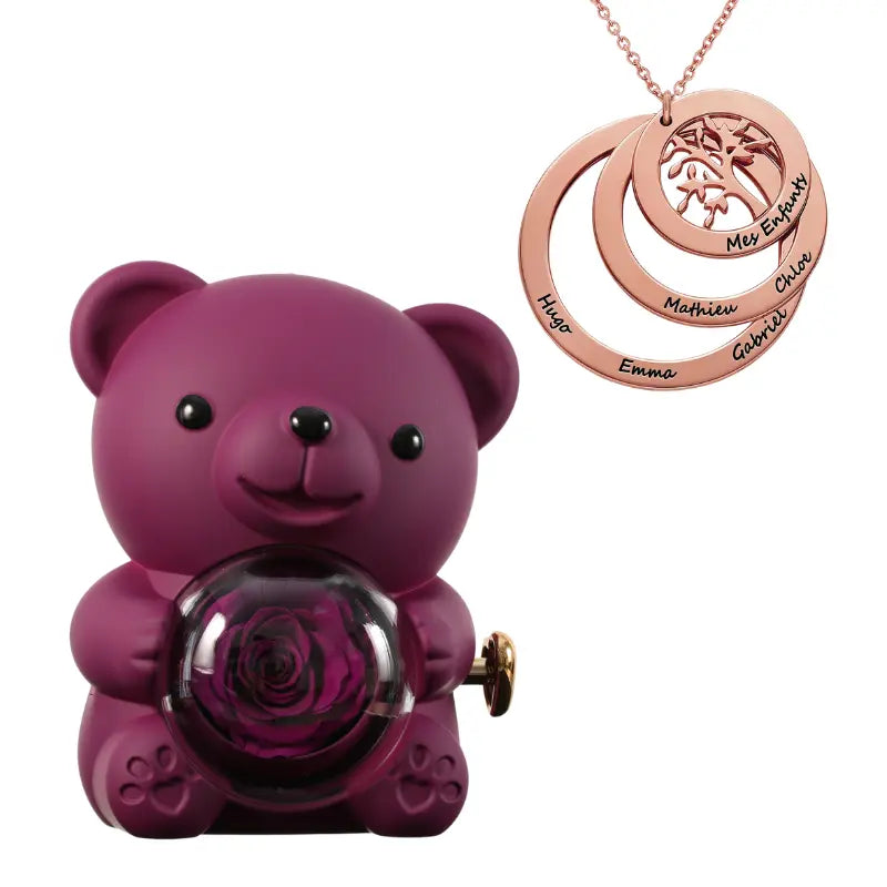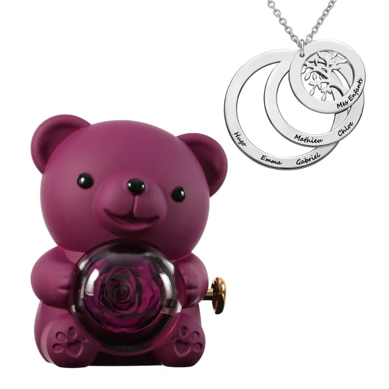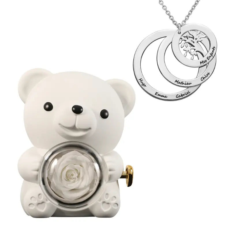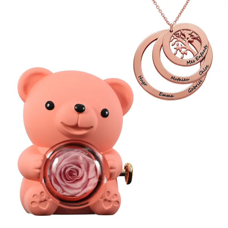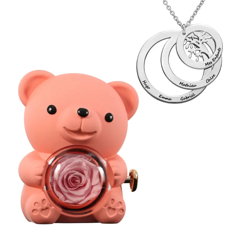 Ours Rose Éternelle avec Collier Cercle Famille - Arbre de vie