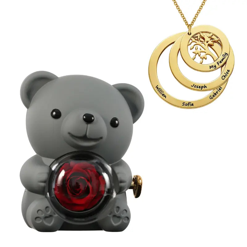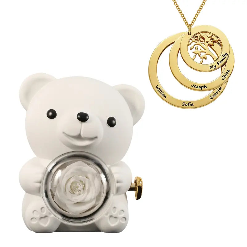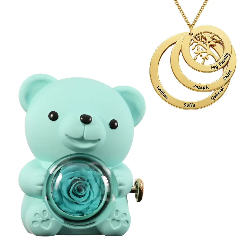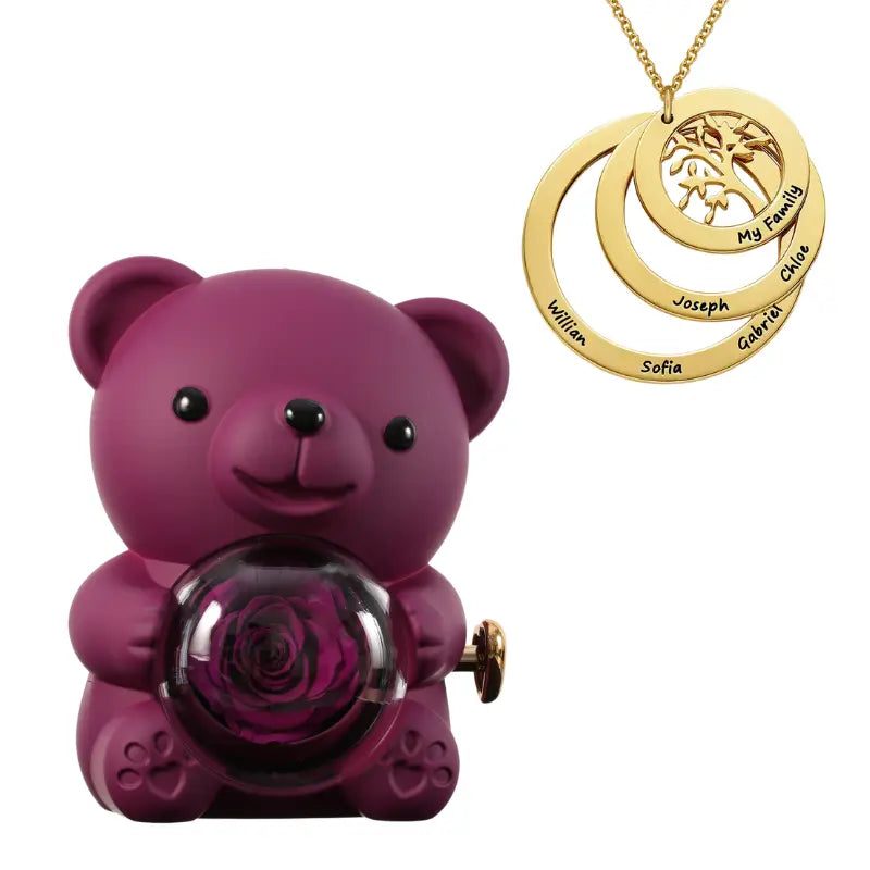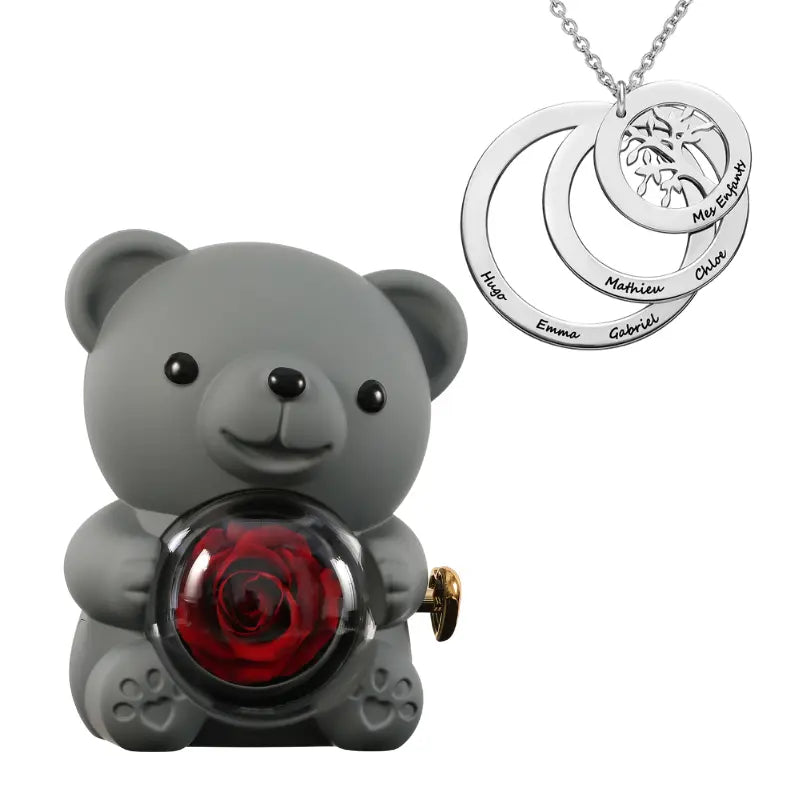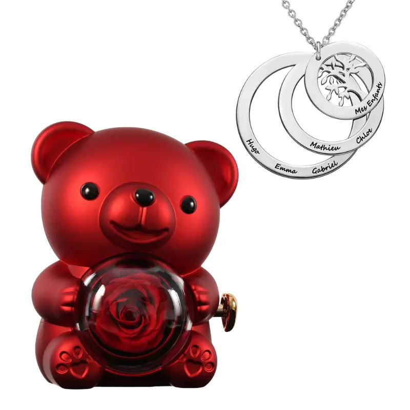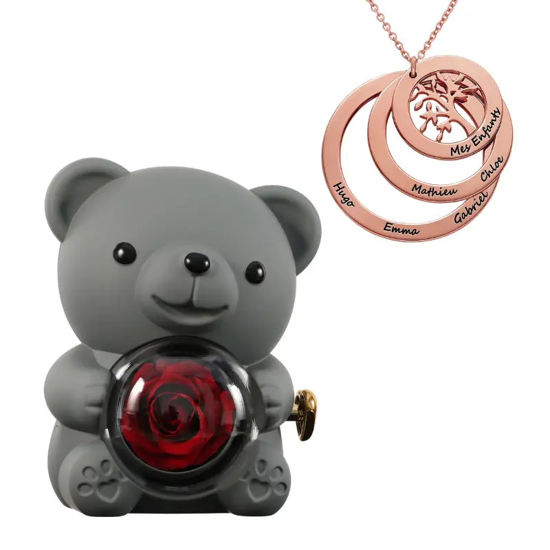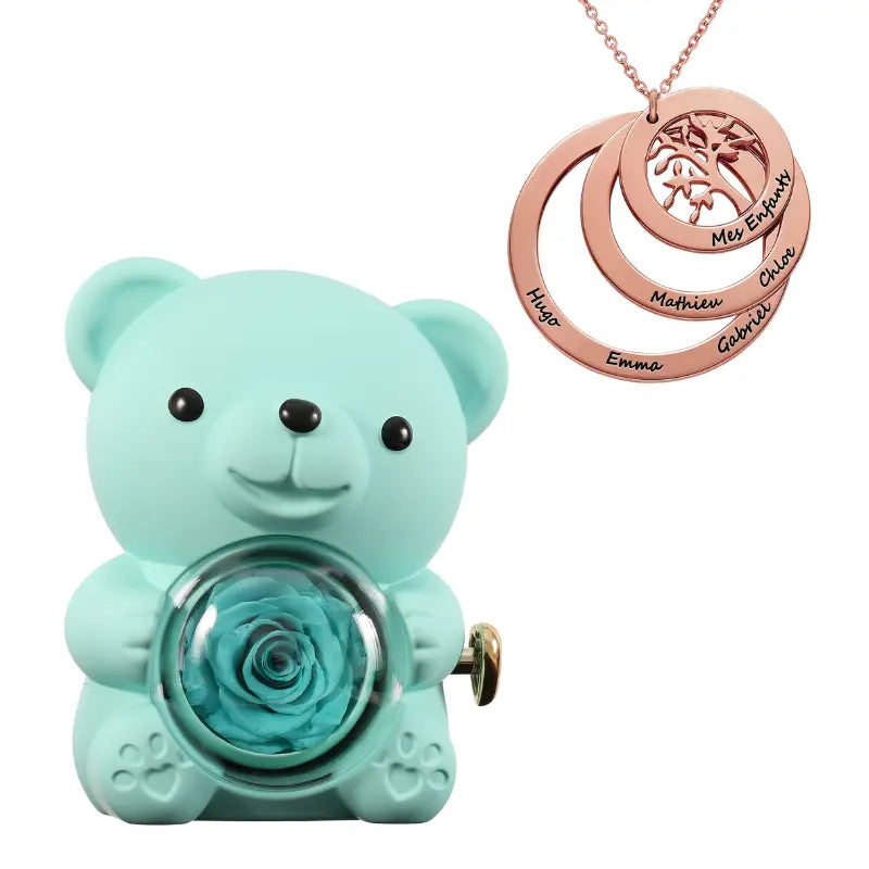 Ours Rose Éternelle avec Collier Cercle Famille - Arbre de vie