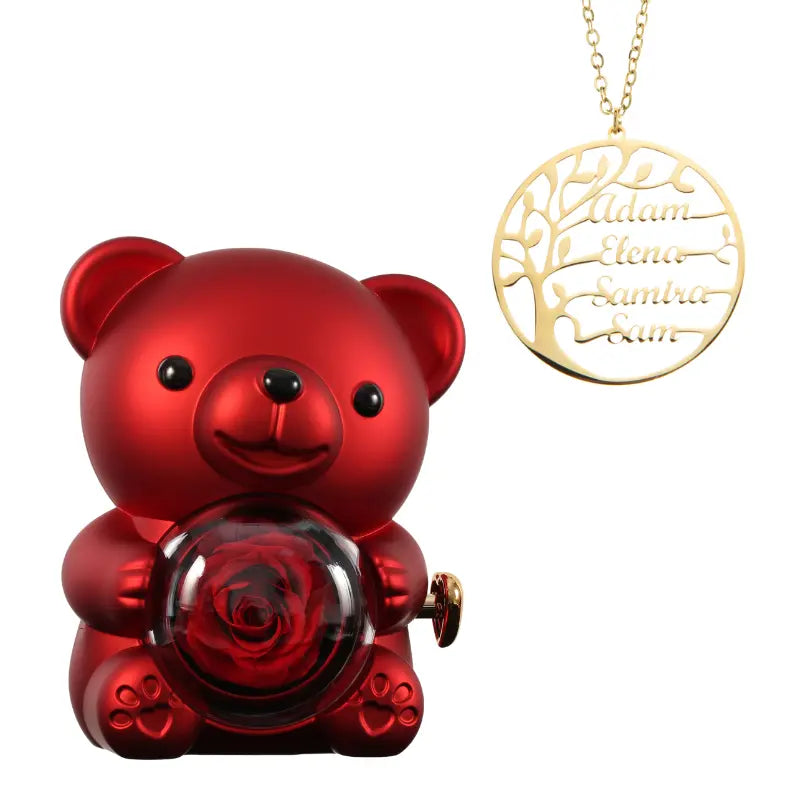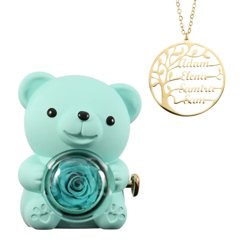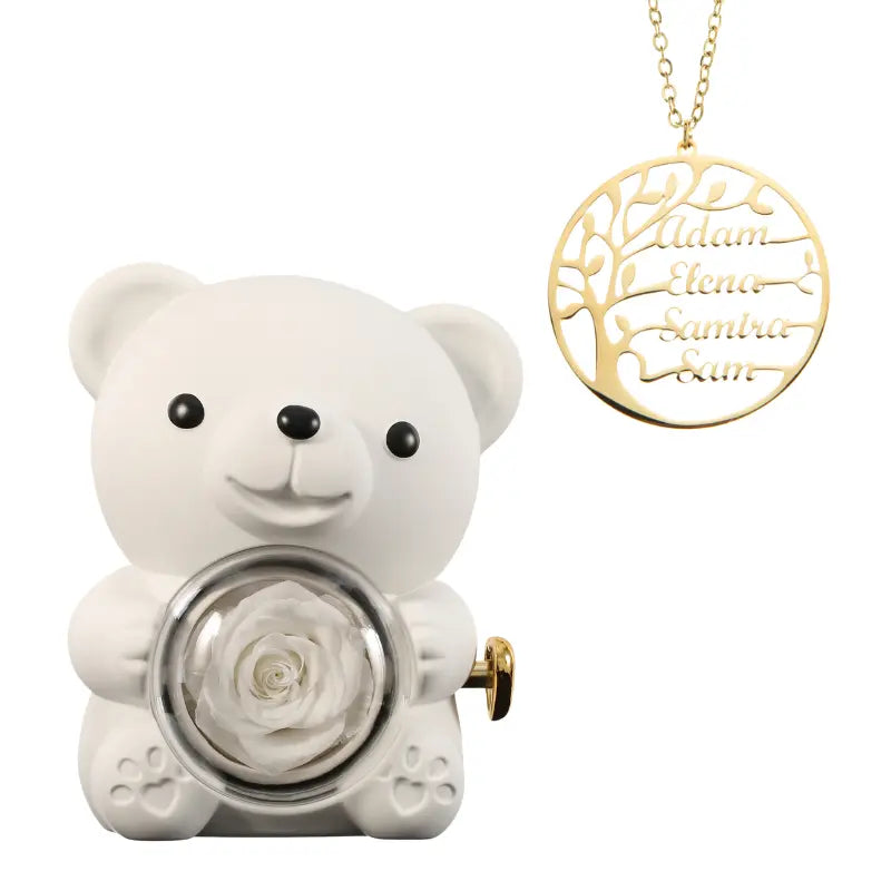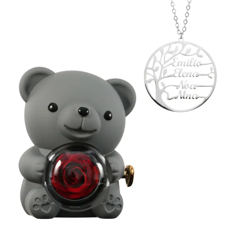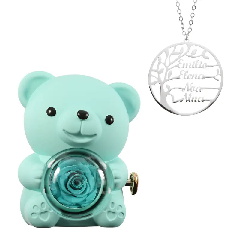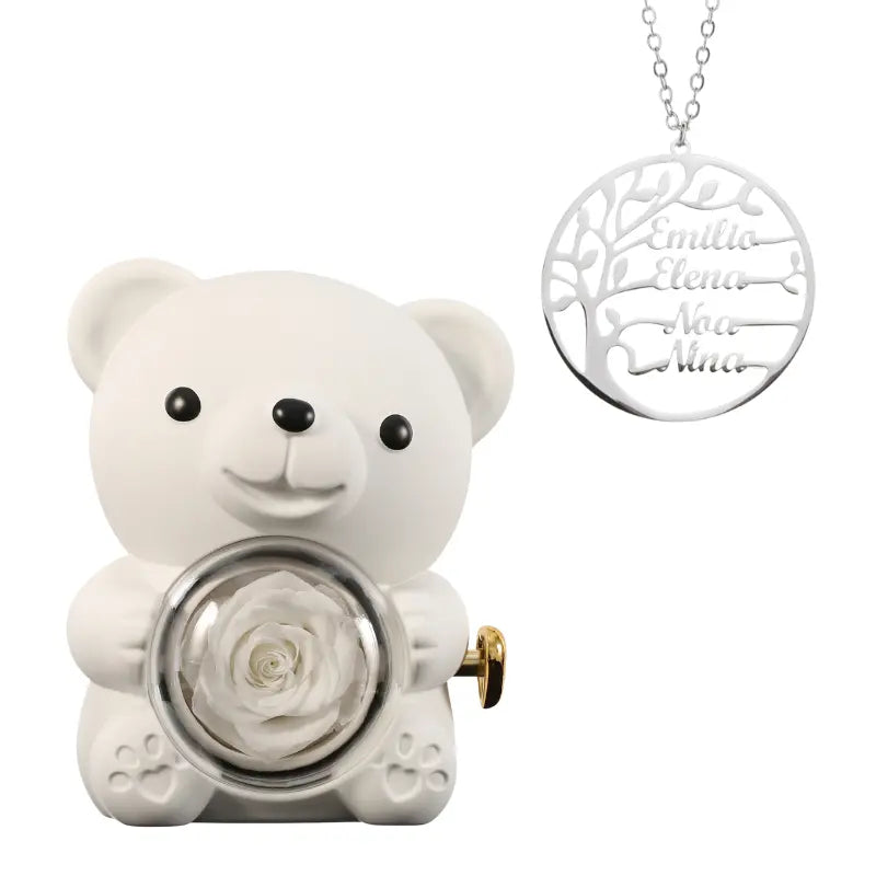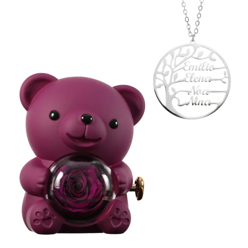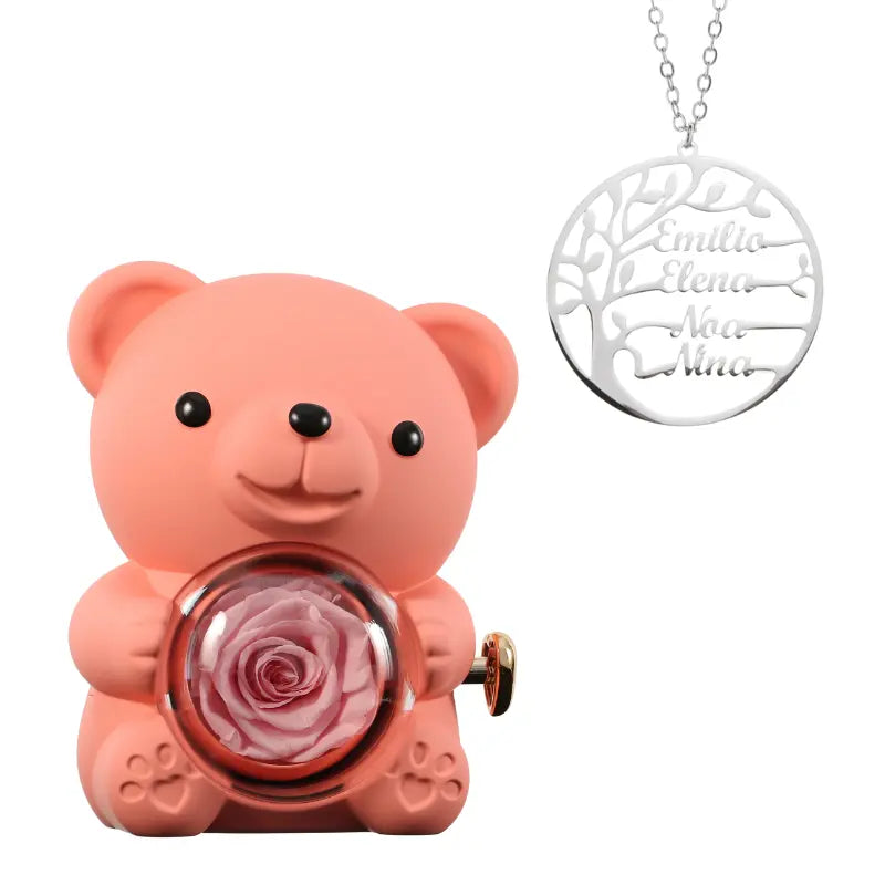 Ours Rose Éternelle avec Collier Prénom Arbre Généalogique - Arbre de vie